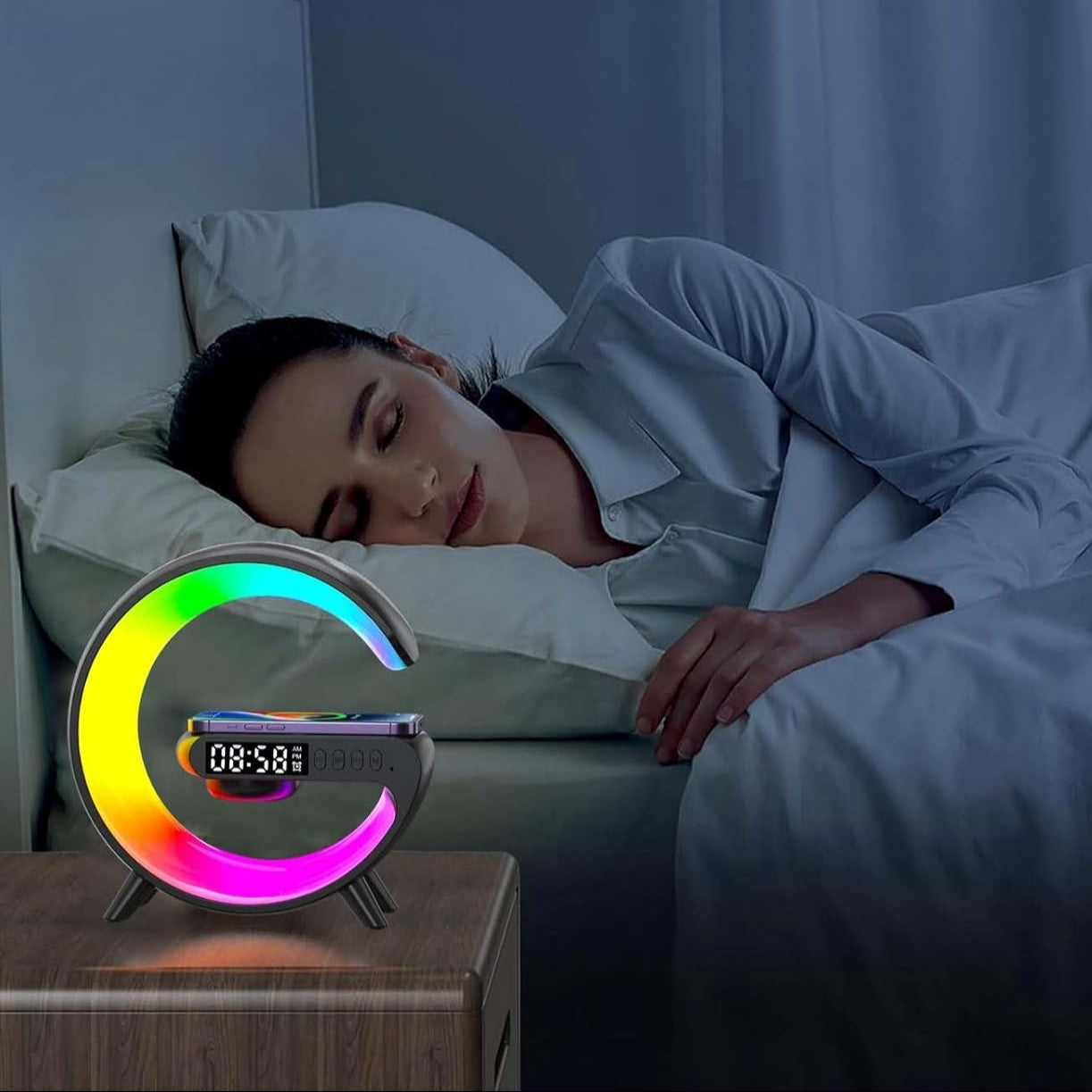 Die G Wireless Lampe vereint modernes Design mit innovativer Technik. Genieße kabelloses Schnellladen für dein Smartphone, beeindruckenden HiFi-Sound und stimmungsvolles RGB-Licht — alles in einem einzigen Gerät. Perfekt für Schlafzimmer, Wohnzimmer oder Büro sorgt diese multifunktionale Lampe für Atmosphäre, Komfort und praktische Funktionalität. Erlebe Musik, Licht und Power auf eine völlig neue Art.